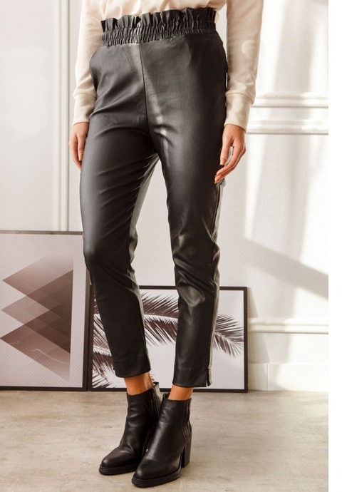 Pantalón engomado de bengalina elastizada con bolsillos laterales y elástico a la cintura